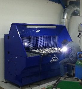 • Pour les opérations de coupage (zippage), les caillebotis sont remplacés par des plats martyrs de 60 x 5 mm.