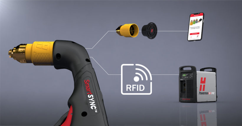 Le lecteur de cartouche Hypertherm fonctionne avec l’application de lecture de cartouches Powermax SYNC™ et permet d’examiner les données stockées sur les cartouches Hypertherm au moyen d’un procédé simple. Le lecteur de cartouche s’insère dans la cartouche et fonctionne avec l’antenne de communication en champ proche (CCP) de votre appareil mobile afin de transférer les données stockées sur la cartouche vers l’application. Les données transférées dans l’application peuvent ensuite être importées dans l’outil d’analyse des données relatives à la cartouche sur Excel, ou un outil créé par le client, afin d’analyser les performances en ce qui concerne les amorçages, les transferts, le temps d’activité de l’arc ainsi que d’autres précieuses données provenant de la cartouche. L’analyse de ces données aide les clients à comprendre l’utilisation des cartouches et à cerner les possibilités de formation des opérateurs.